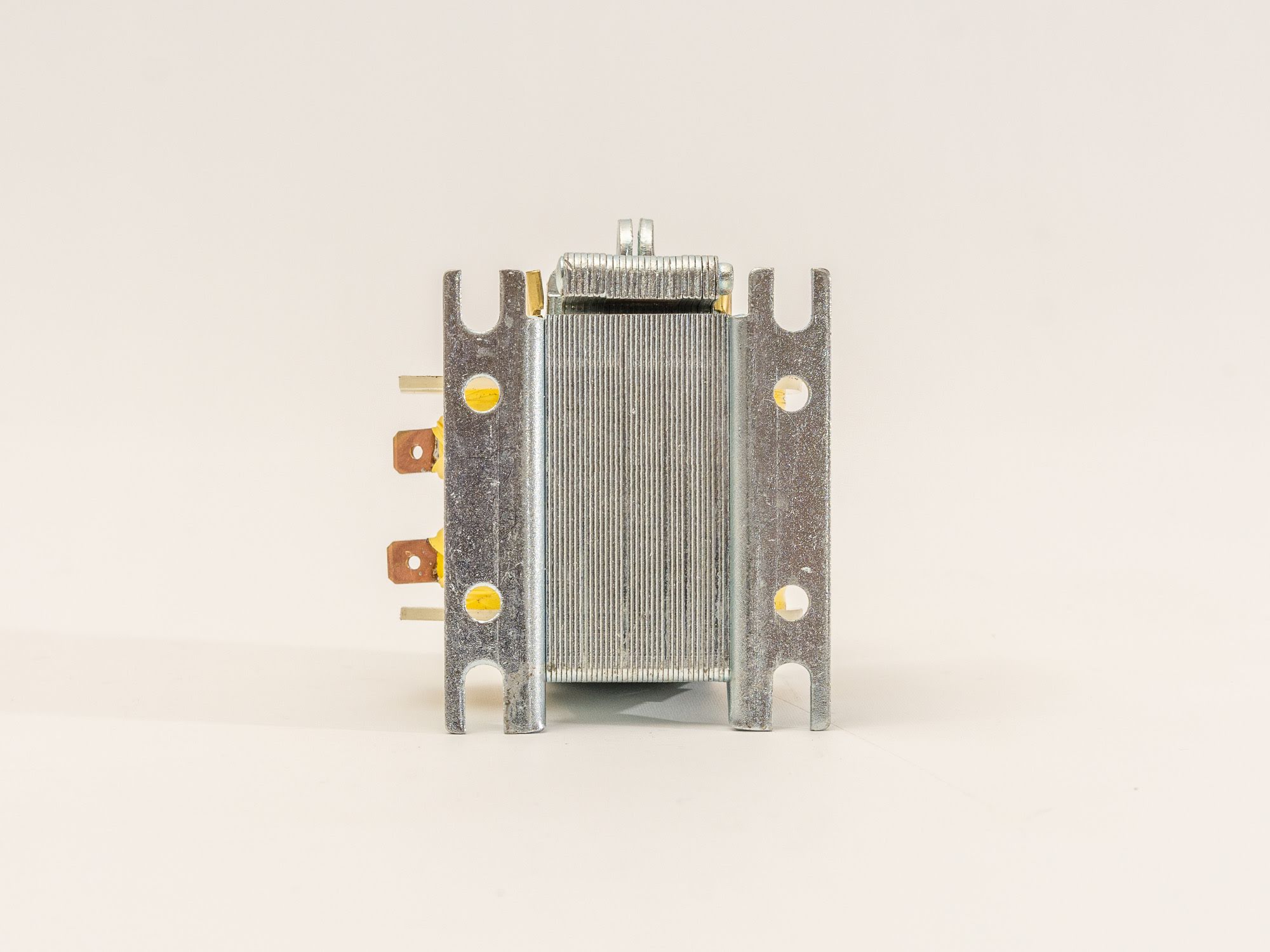 �The complete solenoid assembly is securely held together by a flat steel spring which also flexes to absorb impact shock.